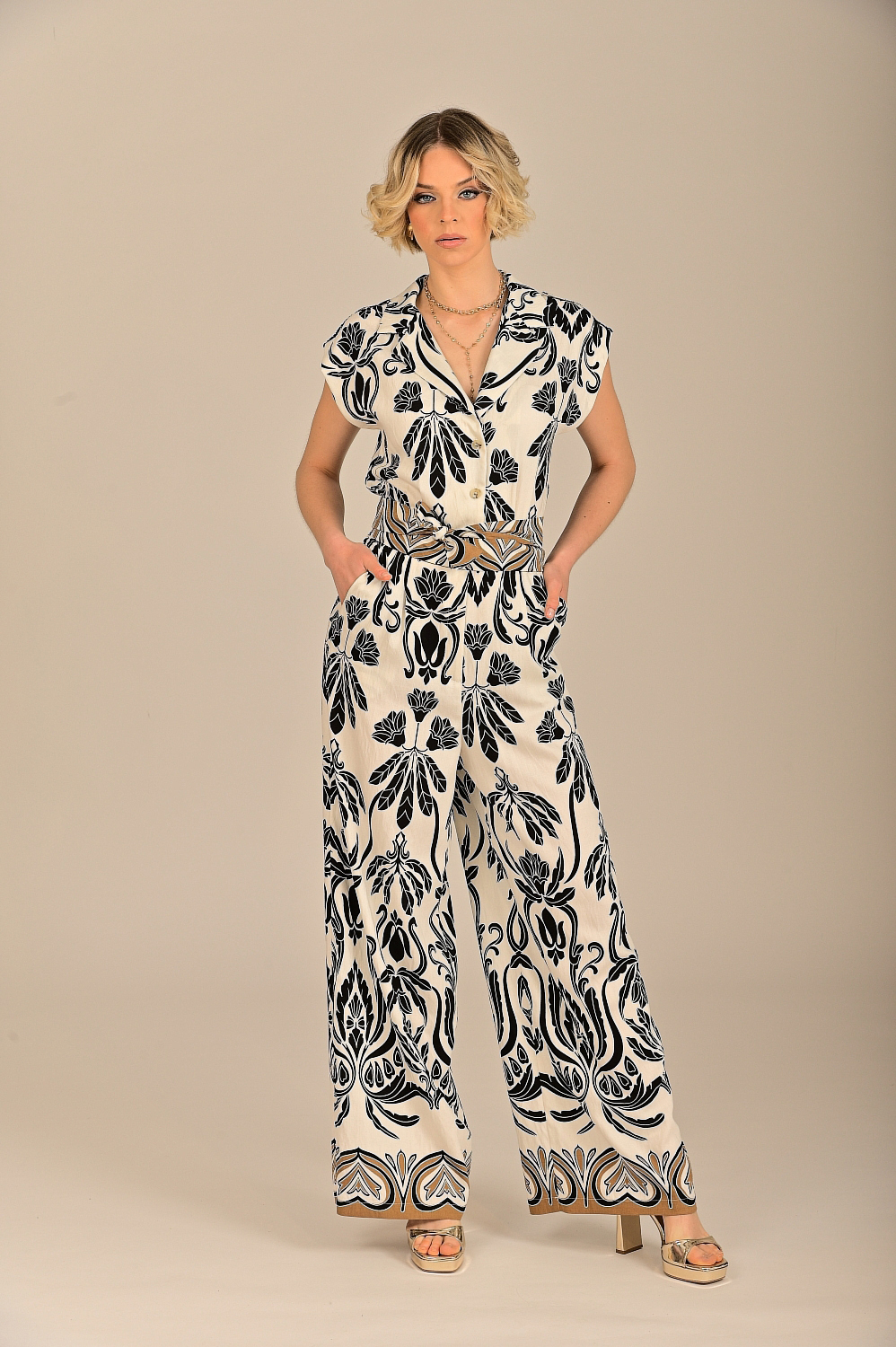 Φόρμα ολόσωμη με μπορντούρα εκρού