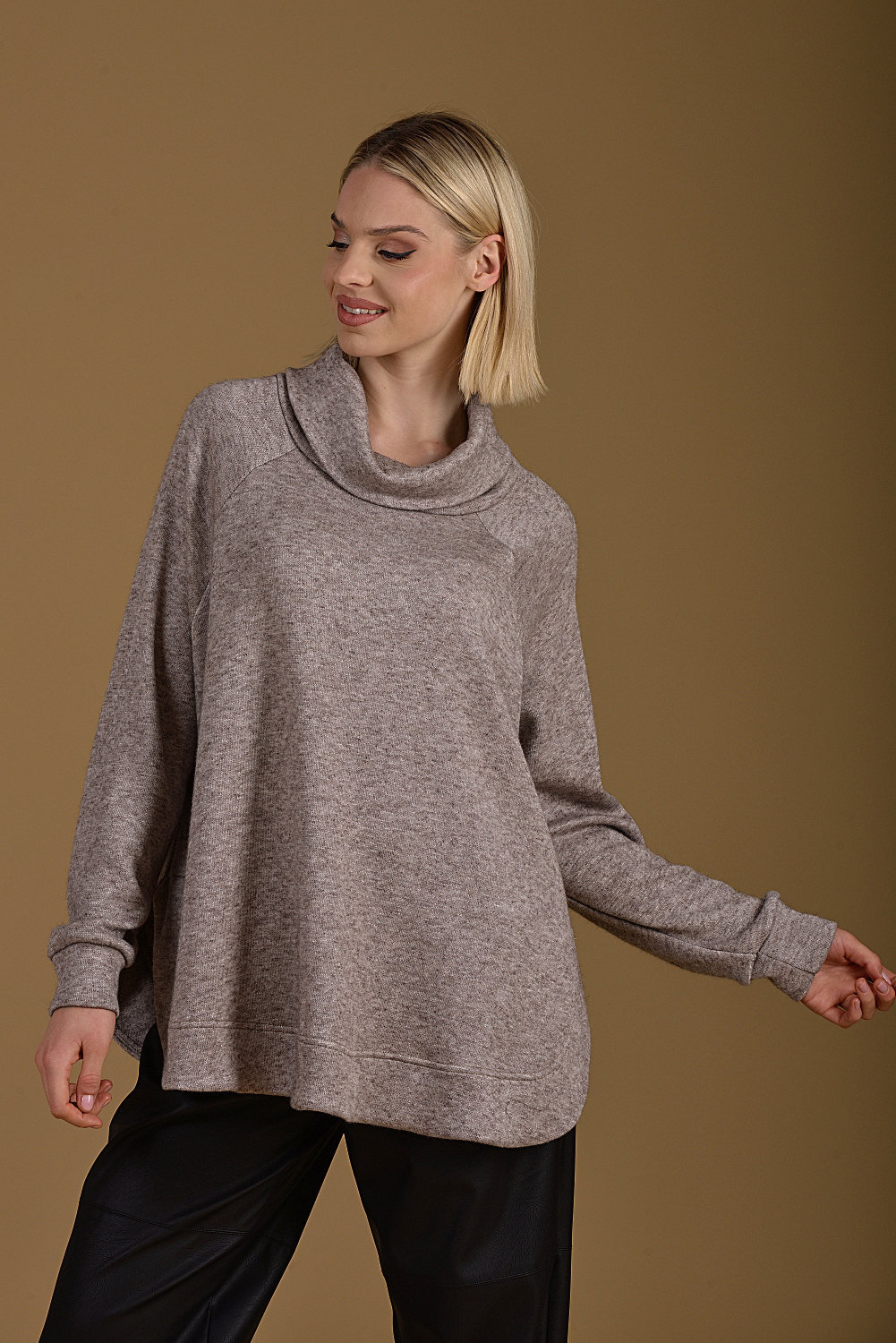 Μπλούζα πλεκτή κλος μακριά καφέ