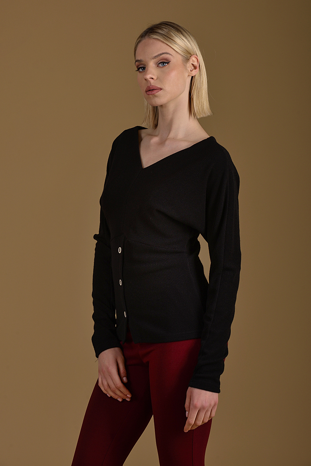Μπλούζα πλεκτή με κουμπιά μαύρο